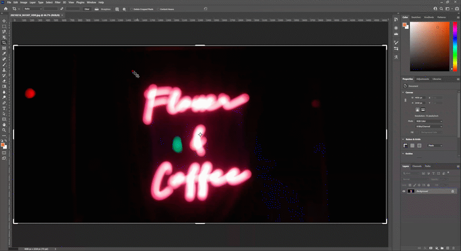 네온사인 이미지에도 자르기 영역이 설정되었습니다.